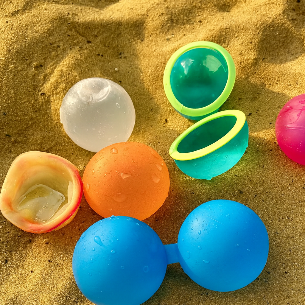 Wasserbomben wie früher? Nur besser. Diese Teile machen genauso viel Spaß – aber ohne Müll, ohne Knoten, ohne Stress. Einfach ins Wasser tauchen, klack – der Magnetverschluss schnappt zu – und schon bist du wieder ready to throw. Auch super geeignet als Geschenk!